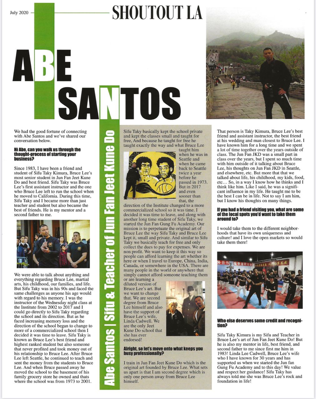 Sifu Abe was interviewed on the magazine LA Voyage!